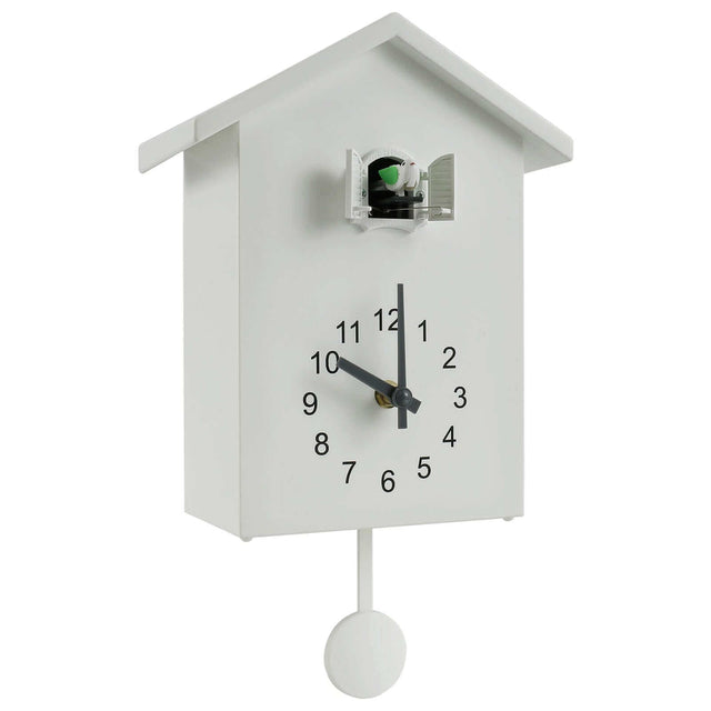 - Denne moderne Kuckuck-klokken er et fantastisk tilskudd til ethvert hjem, tilgjengelig i tre farger: hvit, blå og grønn. Dens moderne design beriker enhver moderne eller minimalistisk interiør. Laget av resirkulerte materialer, er den miljøvennlig, lett å henge opp og enkel å vedlikeholde. Denne klokken tilfører hjemmet ditt et snev av sveitsisk sjarm, samtidig som den hjelper deg å holde tiden.