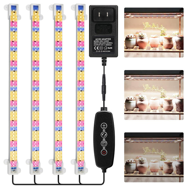 Hjemix | Mosthink Vekstlys Full Spektrum, Led Vekstlys Striper For Innendørs Planter, Plante Lys Med Auto På Av Timer 3 6 12T, 40W Dimbar 5500K Plante Vekstlampe Med 204 Hvite Røde Blå Leds, 4 Pakker