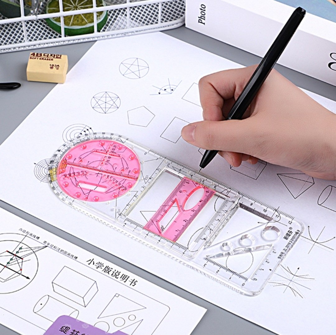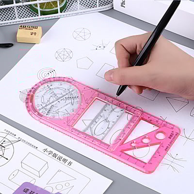 Dette er en geometrisk tegninglinjal som integrerer flere funksjoner, inkludert forskjellige grafiske design, som kan trene praktiske ferdigheter og fantasi.Det kan være en gave til studenter, lærere, kunstnere, og håndverkselskere. En linjal er verdt mange vanlige linjaler.