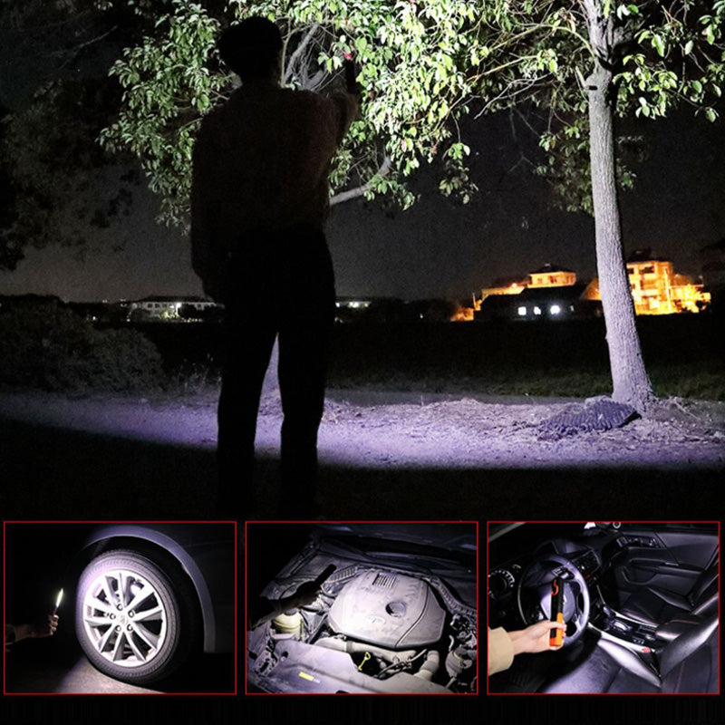360° Rotasjonshook: Lett og bærbar, lommelykten er utstyrt med en 360° roterende krok på toppen for fleksible monteringsmuligheter. Kroken kan foldes for enkel lagring, noe som gjør den ideell for reise.