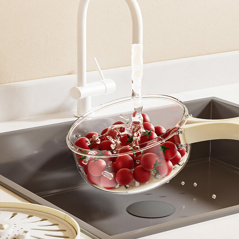 Kompakt håndtakdesign: Håndtaket kan lett foldes for enkel oppbevaring. Når det er helt utvidet, gjør det rengjøringen og dreneringen av frukt og grønnsaker lettvint, noe som forbedrer bruken.
