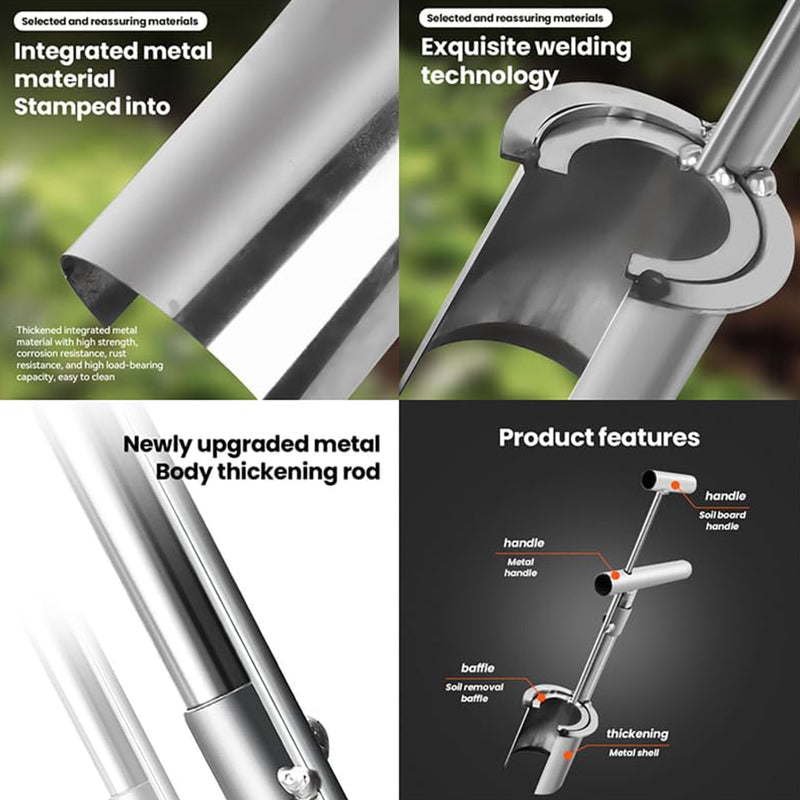 Mangfoldig Hageverktøy: Denne planteklipperen fungerer som et alt-i-ett 5-i-1 verktøy, og inkluderer ugressfjerner, planteklipper, jordprøveredskap, planteverktøy og hullborr. Den er også utmerket for jordtesting og perfekt for å gi næring til planter med en drenering. Dette redskapet gjør det enklere å plante eller dyrke vår- og høstløker, ettårige blomster, bakkenivå planter, grønnsaker og mye mer, og minimerer behovet for flere hageredskaper.