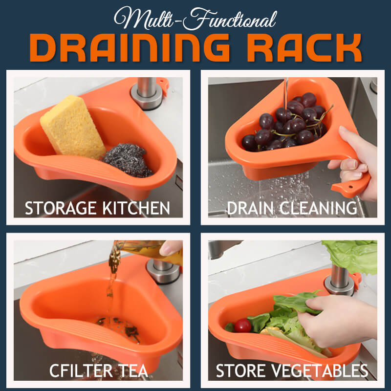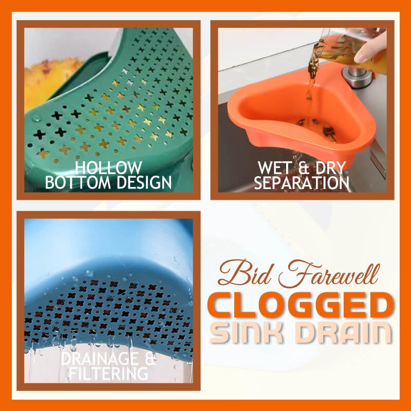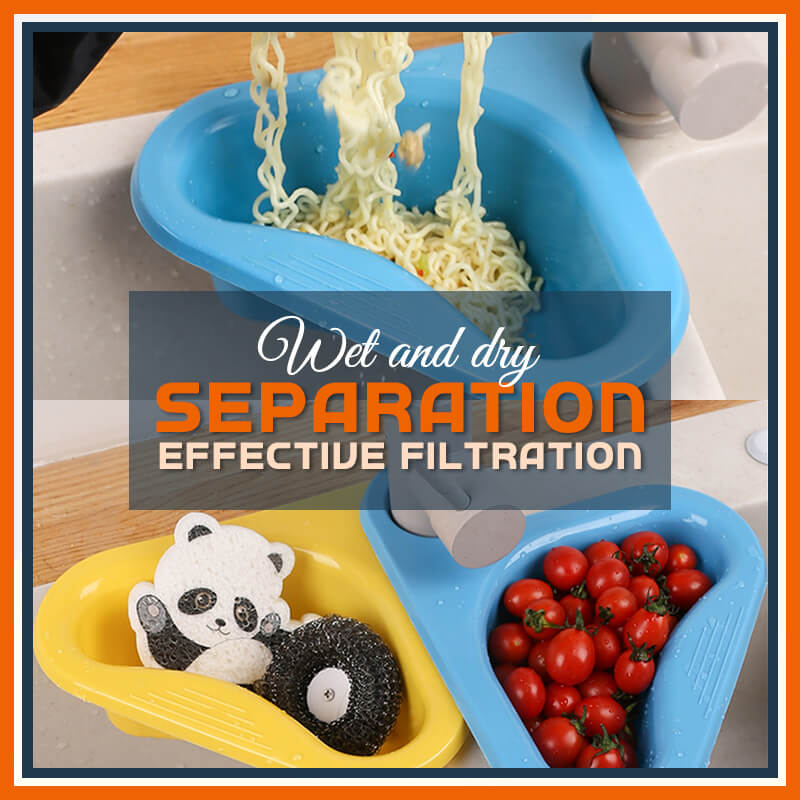 Rester av avfall som tetter avløpet: fiskeskjell, fiskebein, te-rester, rester, moppehår... - Det multifunksjonelle hengende filtrerende dreneringsstativet hjelper deg med å separere vått og tørt matavfall, filtrerer effektivt avfall, drenerer vann og gjør at du slipper tette avløp!