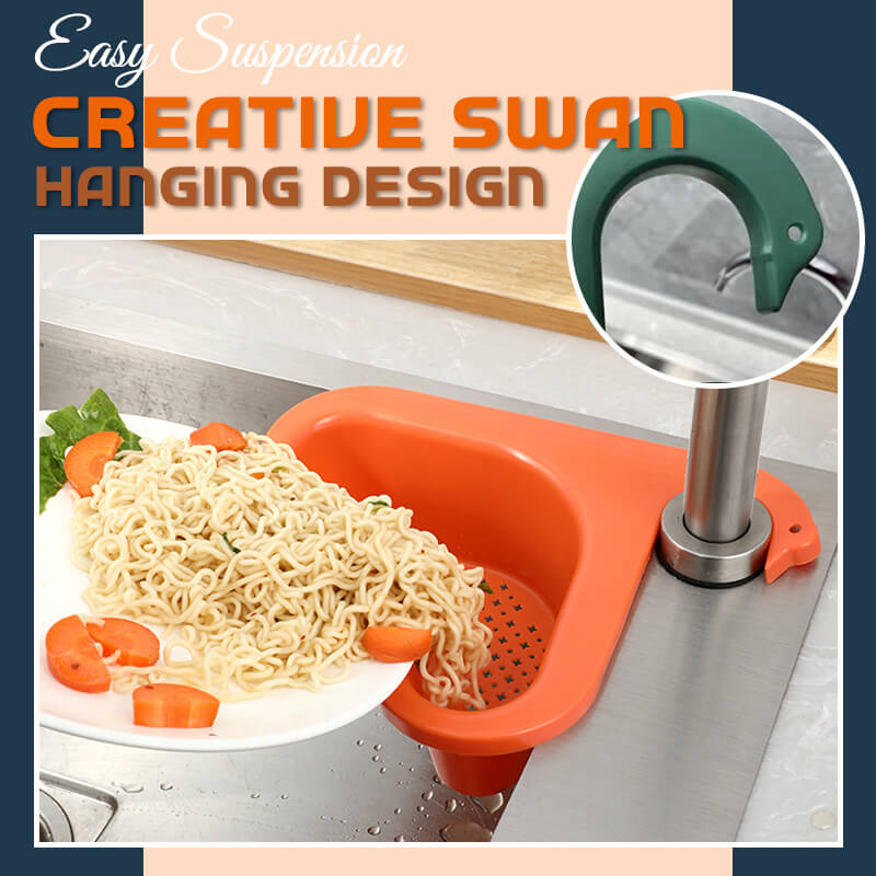 Svaneopphengsdesignet tilpasser seg formen på vasken og henger på kranen for å passe til hjørnene, slik at oppvaskklutene har et sted å henge og man ikke lenger trenger å frykte at det samler seg vann på benken. -