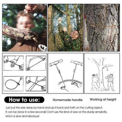 Konstruert med førsteklasses 4-strengs rustfritt ståltråd, som gir utmerket strekkstyrke. Denne sagen er slitesterk, stiv og smidig, noe som gjør den til et ideelt verktøy for overlevelse.