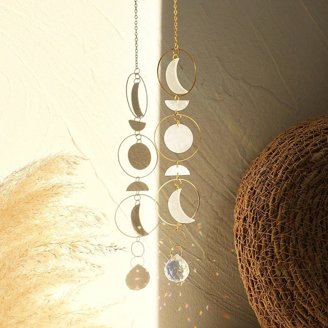 Månefase solfangere med perlemor, forbedret med en glasskrystall pendel. Plasser dette utsøkte objektet på et lyst sted nær et vindu og se hvordan omgivelsene dine fylles med fortryllende lys!