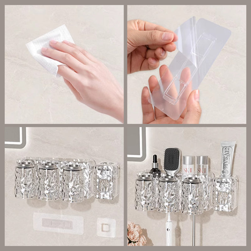 【Tannbørsteholder】- Ideell for organisering av forskjellige gjenstander på badet ditt, som barnas tannbørster, voksentannbørster, elektriske tannbørster eller barberhøvler. Hver plass er spesialdesignet for å minimere sjansen for bakteriekrysskontaminering, og sørger for at holderen forblir tørr og hygienisk for å hindre bakterievekst.