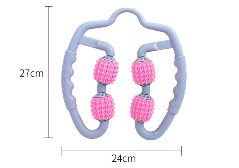 En justerbar og ergonomisk muskelmassør med ruller. Massasjeintensiteten avhenger av hvor mye trykk som brukes. Den kan også fungere som et anti-cellulitt-verktøy.