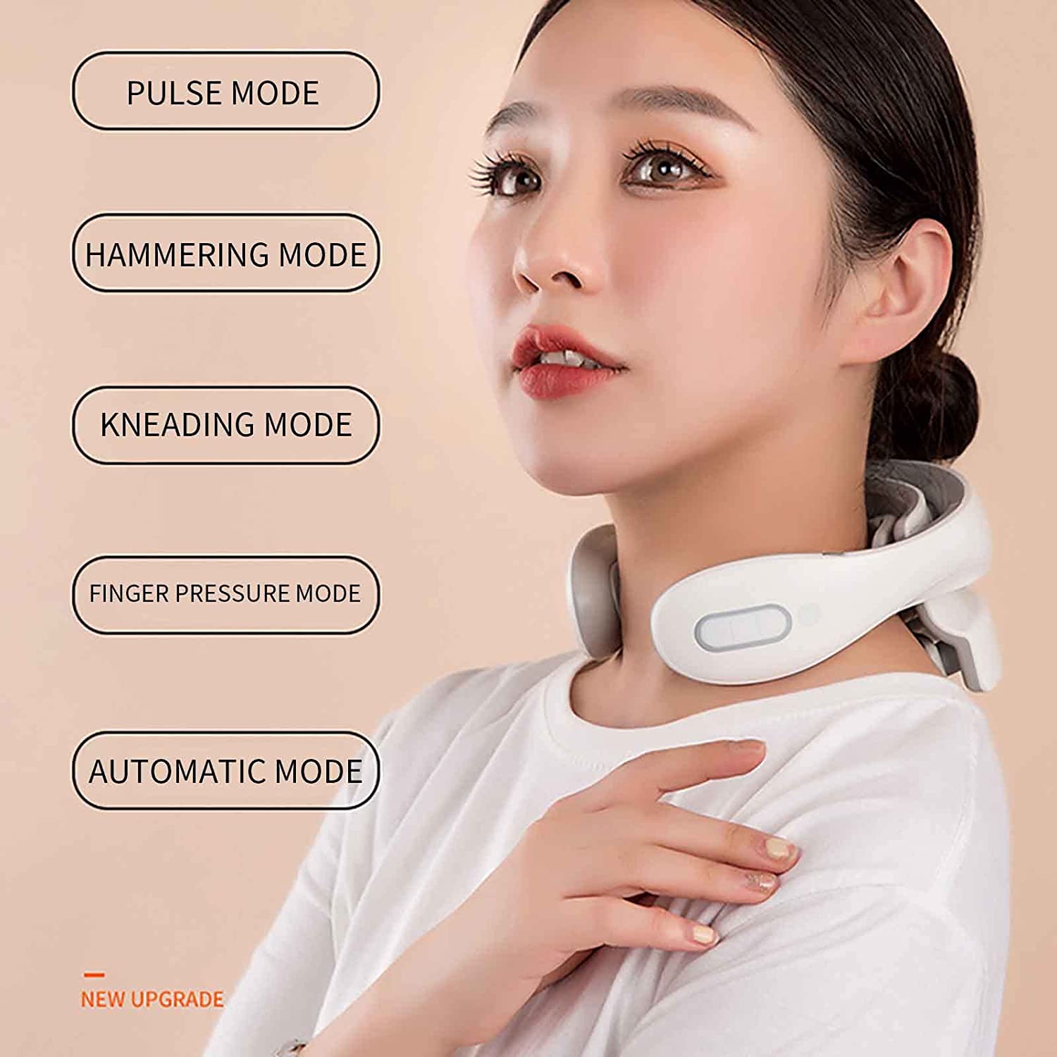- Raskt avlaste spenning i nakken mens du bruker datamaskinen eller smarttelefonen, og nyt flere timers behagelig massasje. Dette kan være med på å forebygge hodepine, kronisk tretthet og stivhet i nakkemusklene.