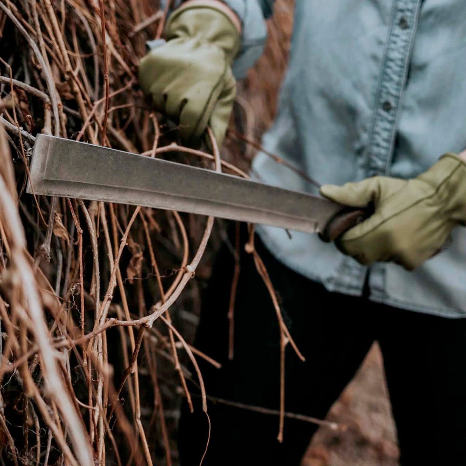 Bruk Nata Tool for å rydde busker, fjerne bark, dele treverk og lage opptenningsved. Den 12" lange bladet i rustfritt stål, som ligner en machete, sammen med en solid stål kjerne (som strekker seg gjennom hele lengden av det harde treskaftet) gir stabilitet og en større svingvekt, samtidig som verktøyet forblir lett og kompakt. Dette er et effektivt (og tør vi si morsomt?) verktøy å ha med seg på camping og utendørsaktiviteter.