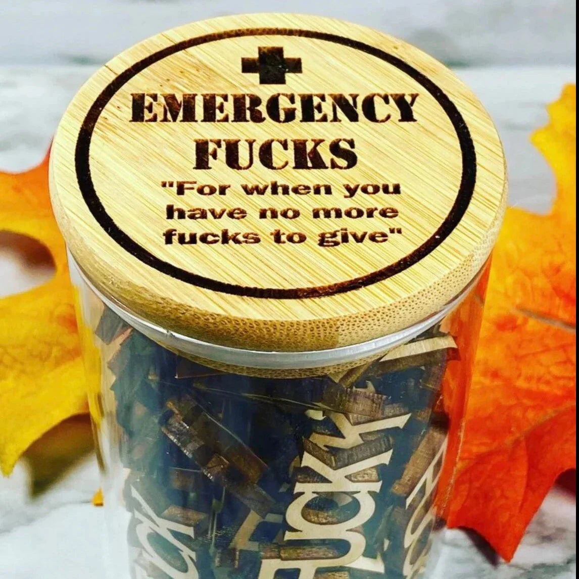 Nødssituasjon F*** - for de tidene når energien er helt fraværende. Disse stilige glassbeholderne er fylt med kunstneriske trefraser som uttrykker "F***." De vil helt klart få frem smil og er et utmerket valg for gaver!