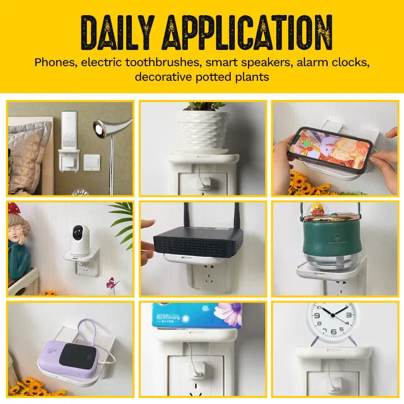 【Bruk i hverdagen】Denne stikkontakt hyllen er den perfekte løsningen for alle lagringsbehov! Den er ideell for oppbevaring av mobiltelefoner, elektriske tannbørster, smarte assistenter, vekkerklokker, dekorative planter og mer.