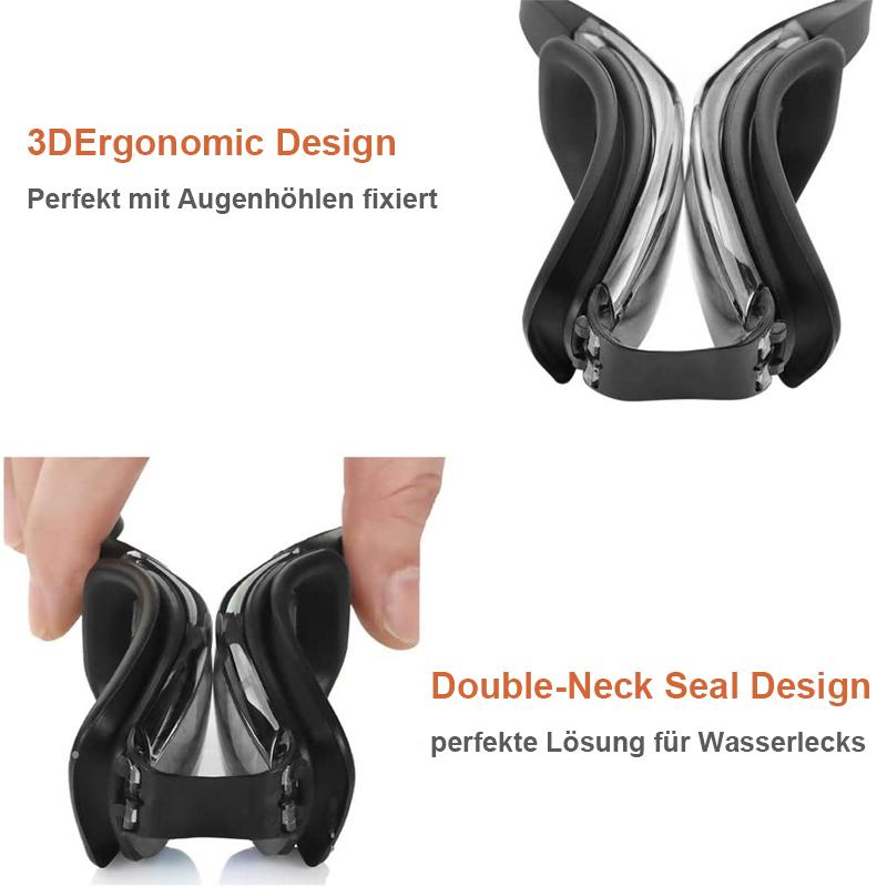 - 【Lekkasjesikre!】 Laget av høykvalitets silikon og med ergonomisk utforming, gir disse brillene en ideell passform for forskjellige ansiktsformer, og forhindrer effektivt vanninntrengning.