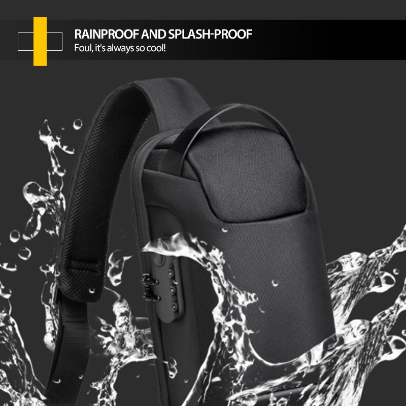 USB Port Funksjonalitet: Utrustet med en ekstern 3.0 USB-lader og en intern ladekabel, lar denne brystvesken deg lade telefonen mens du er på farten. Skulderstroppen kan justeres til ønsket lengde.