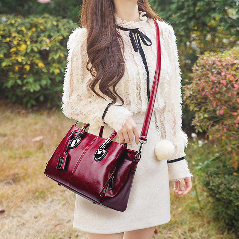 Hjemix | Nye vesker laget av oljevoks lær Boston, stor tote bag laget av mykt lær