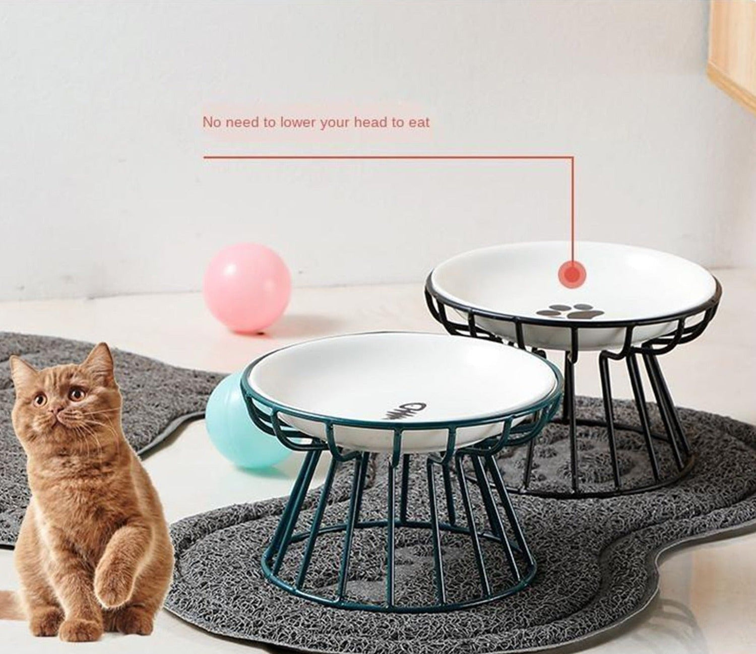 Et hevet & flatt skål design reduserer presset på kjæledyrets ledd og mage. Oppkast Katteskål