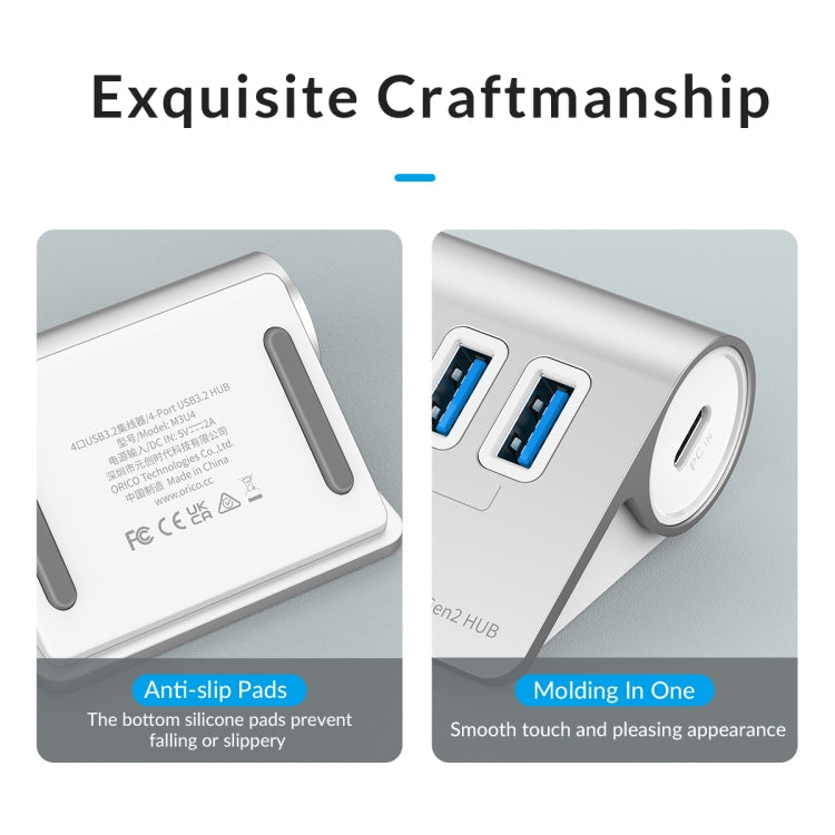 Hjemix | ORICO M3U7-G2 Aluminiumlegering 7-port USB 3.2 Gen2 10Gbps HUB med 0,5 m kabel (Sølv)