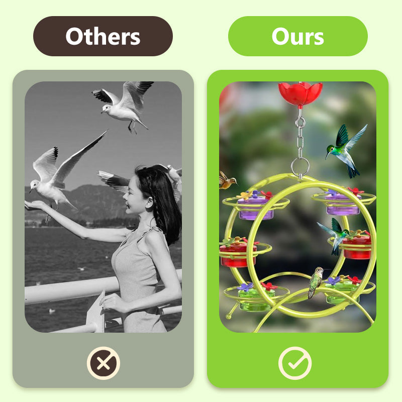 ANTI-MOAT DESIGN - Stop ants and other pests from invading the nectar. The built-in anti-moat barrier creates a protective zone, ensuring only hummingbirds can access the sweet treat. Say goodbye to contaminated nectar and hello to a cleaner, healthier feeding environment.