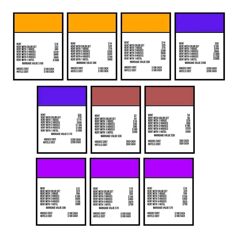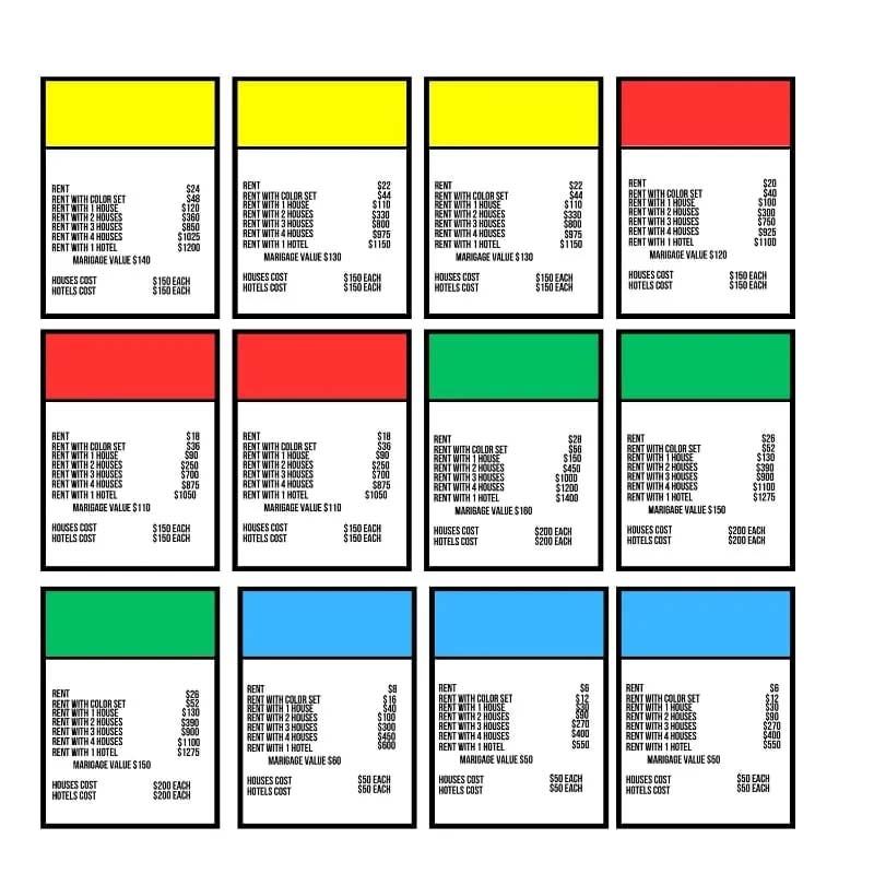 Variert Spillinnhold: Spillet for par inneholder alt som er nødvendig: et spillbrett, leiekort, sjanskort, fellesskapskort og spillvaluta. Alle delene er laget av kvalitets, vannavstøtende papir for langvarig bruk.
