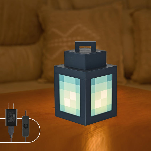 - Firkantet lampe med frontpanel som viser pixelmønstre