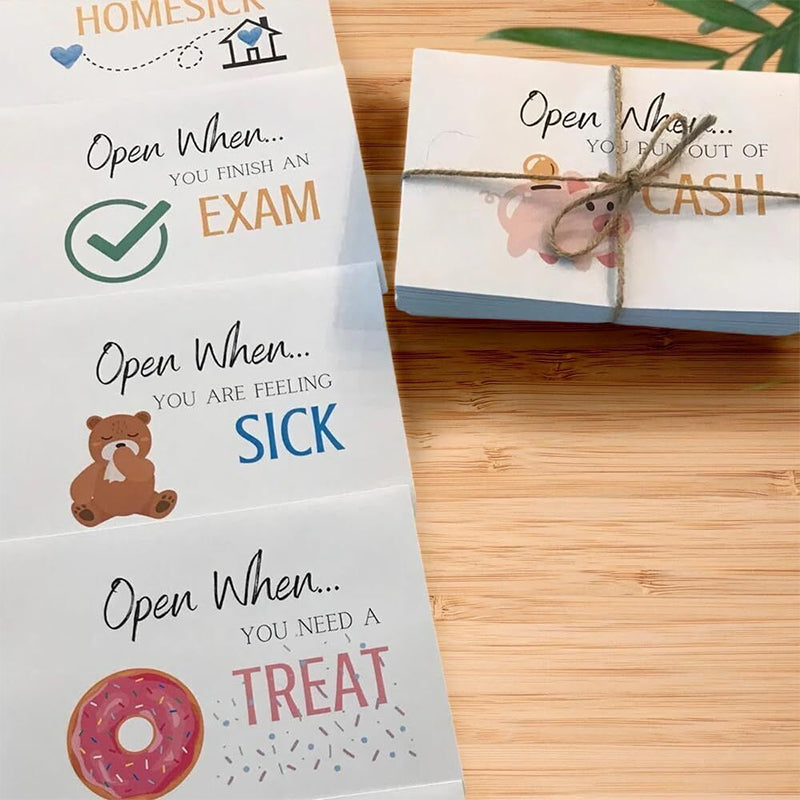 Laget av høykvalitets papir, disse konvoluttene er fargerike, godt trykt, slitesterke og lette å bruke. De utgjør en ekte hjertevarmende gave for alle som skal på college eller flytter, enten det er barnet ditt, en student, eller en venn.