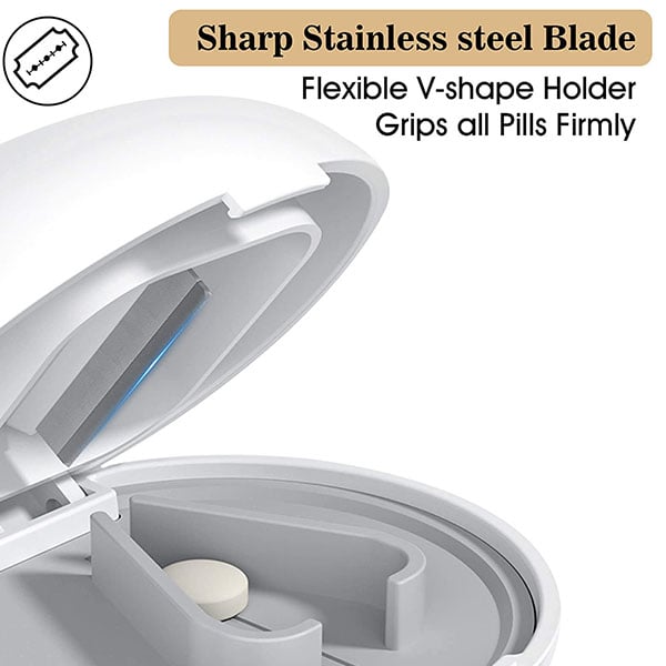 - ✅[Nøyaktig deling av tabletter] Tablettholderen sørger for at hver tablett håndteres trygt og muliggjør presis deling i halve, kvarte eller åttendedeler. Hver deling skjer enkelt takket være det ekstremt skarpe og sikre stålet.