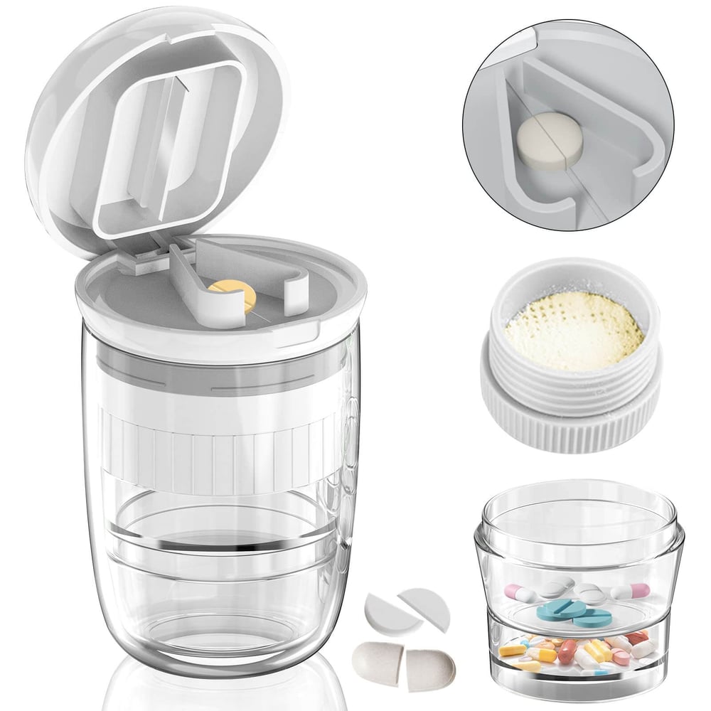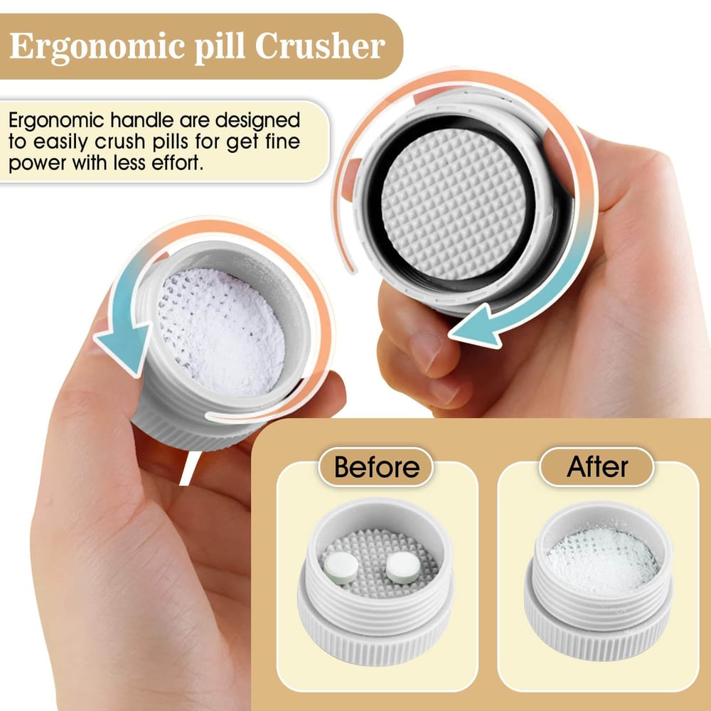 - ✅[Multifunksjonell pilleholder 4-i-1] Denne smarte pilleboksen tilbyr funksjoner som tablettholder, grinder, dobbelkompartment-organisator og drikkekopp, alt samlet i en enhet. Den er perfekt for reise, kontorbruk og hverdagslig bruk; den passer lett i en veske eller ryggsekk.