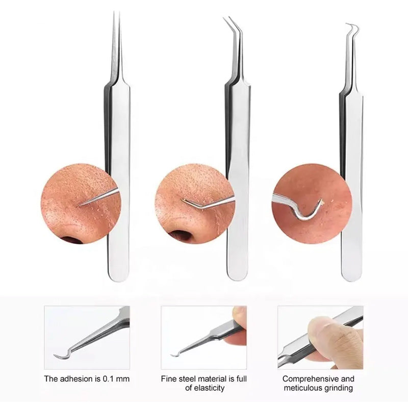 - Ekstraksjonsverktøyet er laget av høykvalitets rustfritt stål, identisk med det som benyttes i kirurgiske instrumenter, noe som gjør dem egnet for alle hudtyper, inkludert sensitiv hud. De er motstandsdyktige mot rust og korrosjon, enkle å sterilisere, og designet for langvarig bruk.
