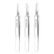 - Design: Vanlig sett inkluderer tre pinsetter (jernboks), standard skarp speillys/rett klipp (jernboks), standard skarp speillys/skrå klipp (jernboks), og standard skarp speillys/hook klipp (jernboks)