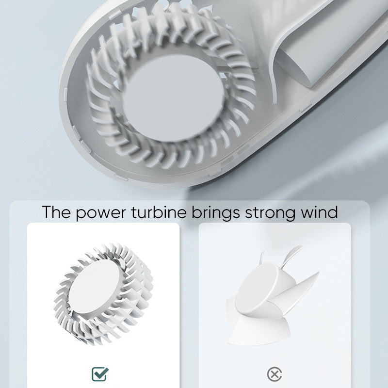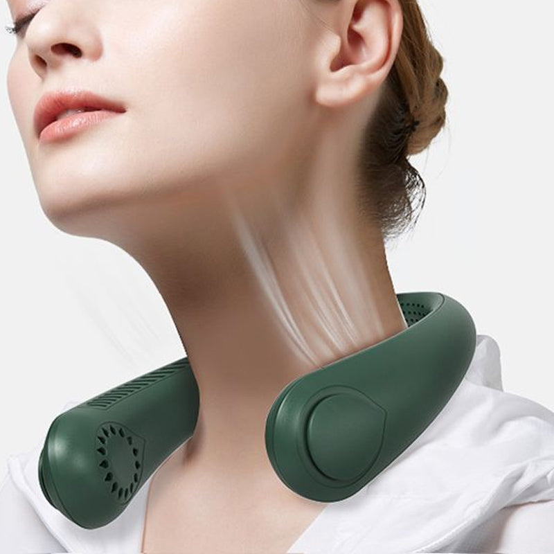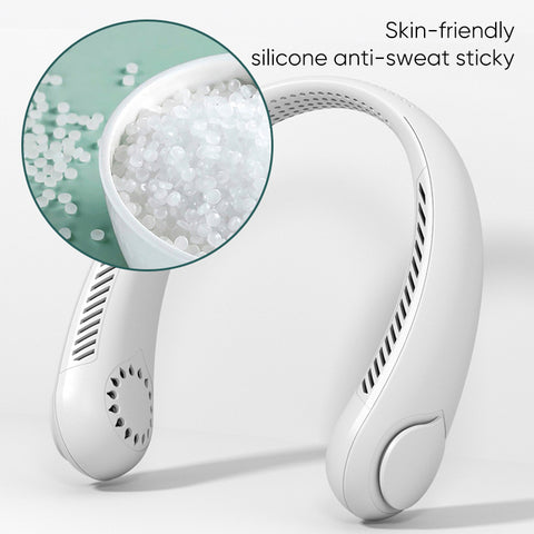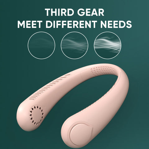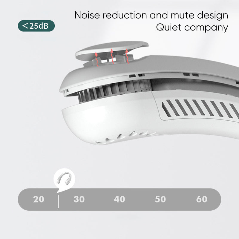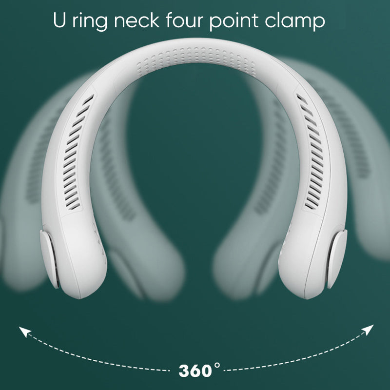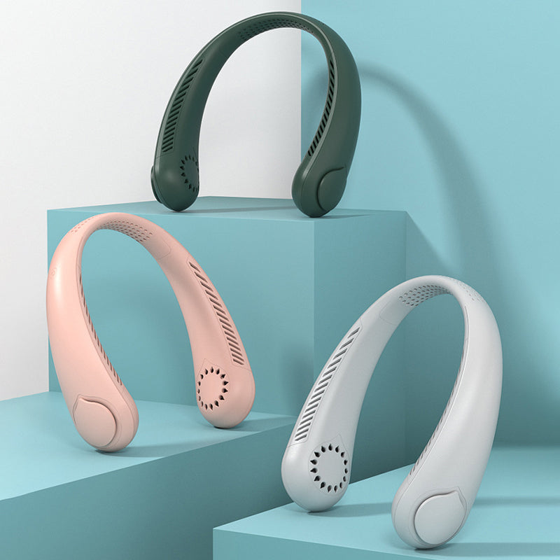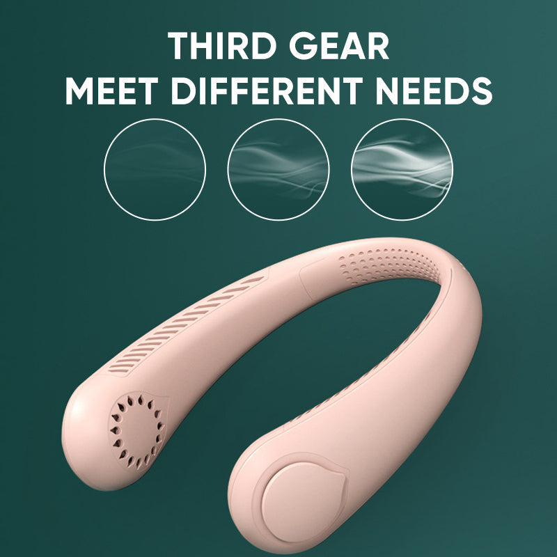 MODERNE HÅNDFRI DESIGN: Hold deg avkjølt med eleganse ved hjelp av denne trådløse viften med hodetelefon-design.