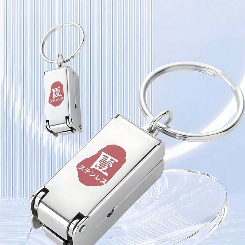 Perfekt for reiser og alltid klar for en feilfri manikyr. Med den hensiktsmessige nøkkelringen kan du feste den til nøkkelringen, ryggsekken eller vesken din, eller bruke den både som et stilfullt tilbehør og et nyttig redskap.
