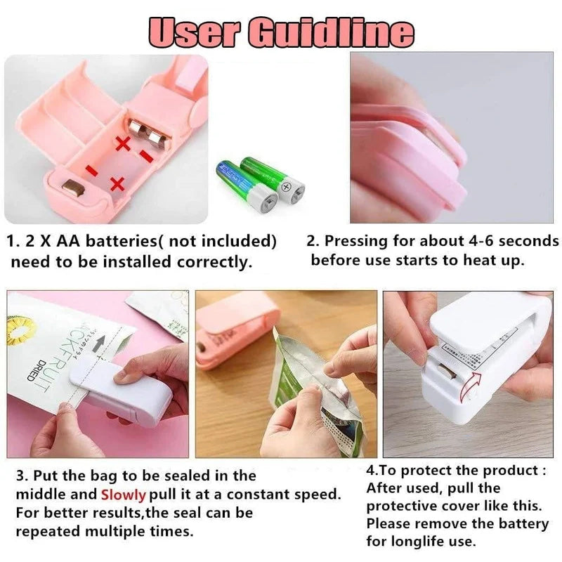 Dette praktiske mini-forsegleren holder maten din (som chips, godteri, snacks og rester) fersk og beskyttet mot fuktighet.