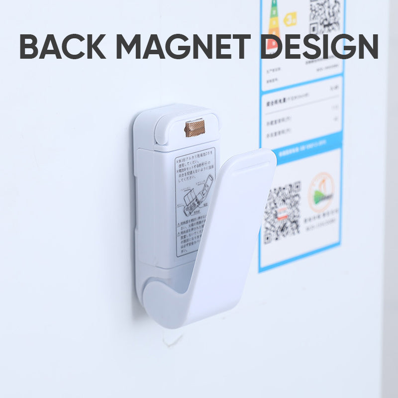 Praktisk & Sikker Matforsegler: Den magnetiske bunnen gjør det enkelt å feste den til kjøleskapet eller andre metalloverflater, slik at den alltid er lett tilgjengelig på kjøkkenet, ute, i skapet, eller der du måtte trenge den.