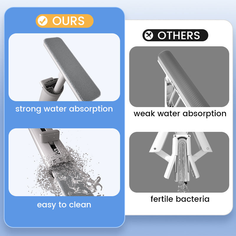 【Praktisk Selvrensende Flat Mop】 Denne moppen, som er utstyrt med en selvrensfunksjon, fjerner behovet for ekstra bøtter. Når du beveger håndtaket, settes den tverrgående skraperen i gang for effektivt å fjerne smuss og frigjøre overflødig vann. Løft moppplaten, og den vil automatisk returnere til sin opprinnelige posisjon. Den integrerte gulvrensemoppen holder hendene dine rene og forenkler hele rengjøringsprosessen.