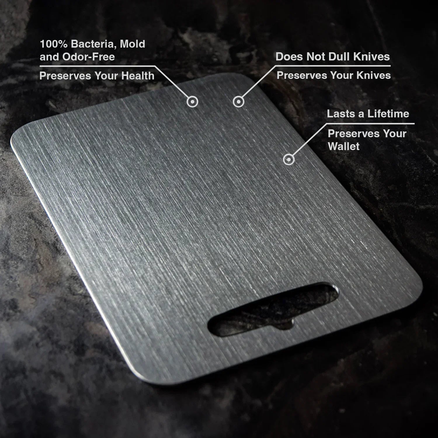 Gentle on knives - Titanium is 3 times softer than steel, which is used in 99% of chefs' knives. This prevents your knives from dulling quickly, saving you money on replacements. With the Titanium Cutting Board Pro, your knives stay as sharp as when using wooden boards.