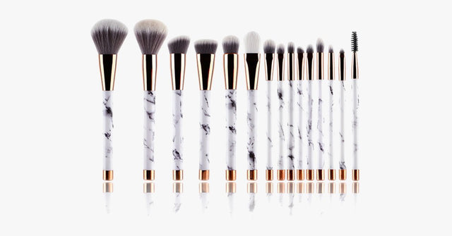 Hjemix | Pro Makeup Brush Set of 15 med Rose- og Marmor mønster - Perfekt for alle Makeup Applikasjoner