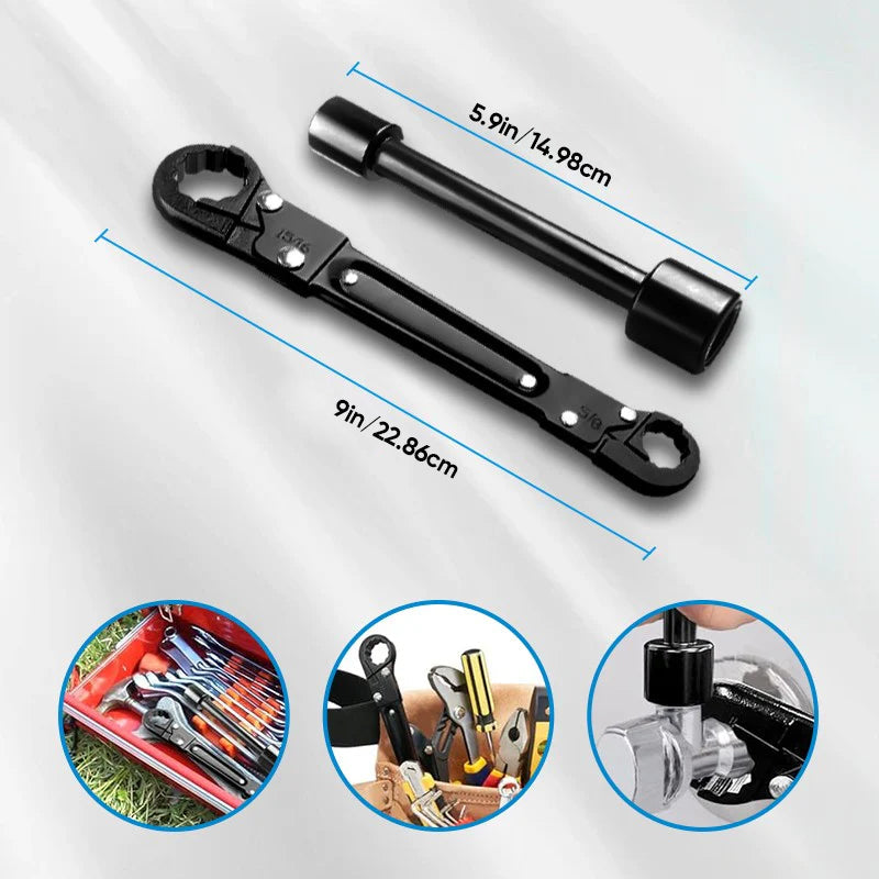 Denne skralleverktøyet er spesialdesignet for arbeid i trange rom, og gjør rørleggeroppgaver håndterbare selv på de mest krevende stedene.