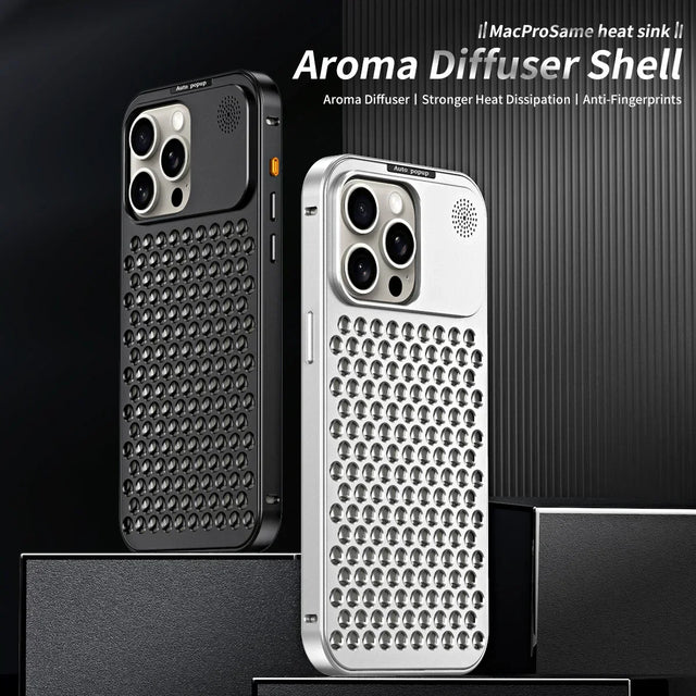 Metall Hult Kjøle Telefondeksel For iPhone 14 12 13 15 Pro Max 15Plus Aluminium Varmeavledning Duftspray Avtakbart Deksel