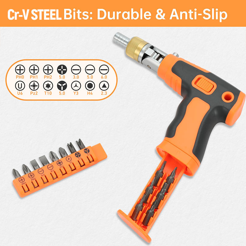 - Alt-i-ett Skrutrekker Sett: Dette skrutrekkersettet med ratchet inneholder 14 ulike bits laget av krom vanadiumstål, som gir et komplett verktøysett for dine daglige oppgaver. Med denne samlingen kan du effektivt håndtere demonteringsoppgaver og oppfylle dine vanlige behov.