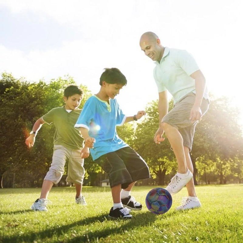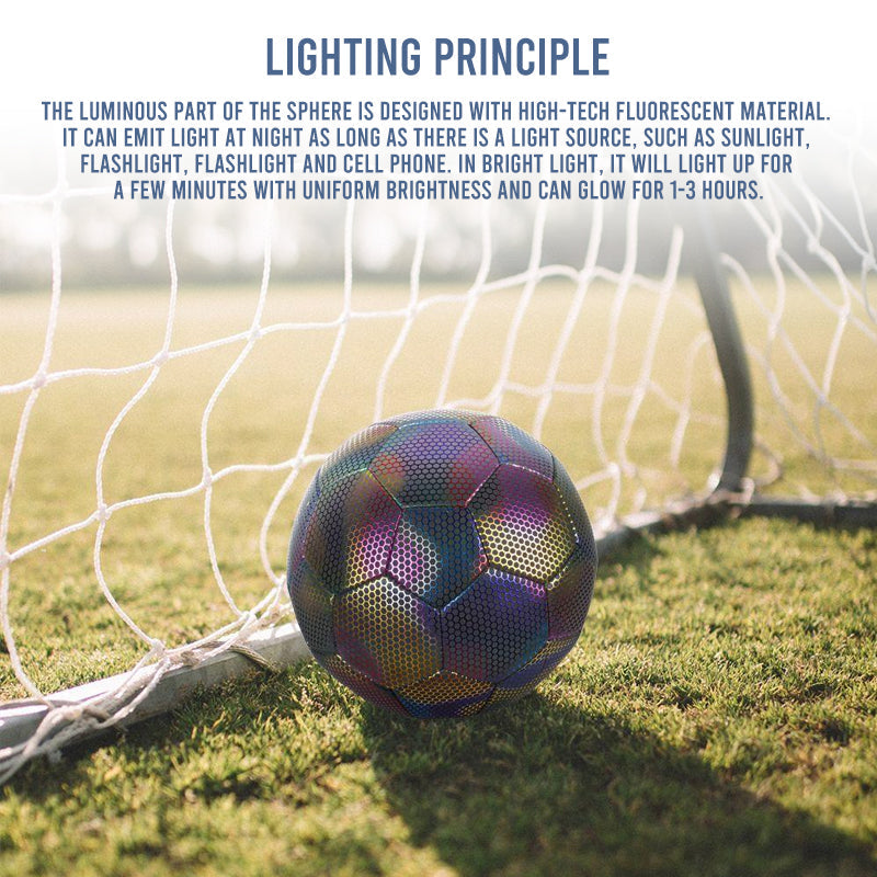 DE PERFEKTE GAVENE TIL FOTBALLENTUSIASTER - Dette er den ultimate gaven for enhver som elsker fotball. Ballen lyser opp når lys reflekteres mot overflaten. Ta bilder eller videoer med blitsen aktivert, og ballen vil skinne vakkert. En slående lysende fotball vil heve selvtilliten din på banen og gjøre deg til sentrum for oppmerksomhet.