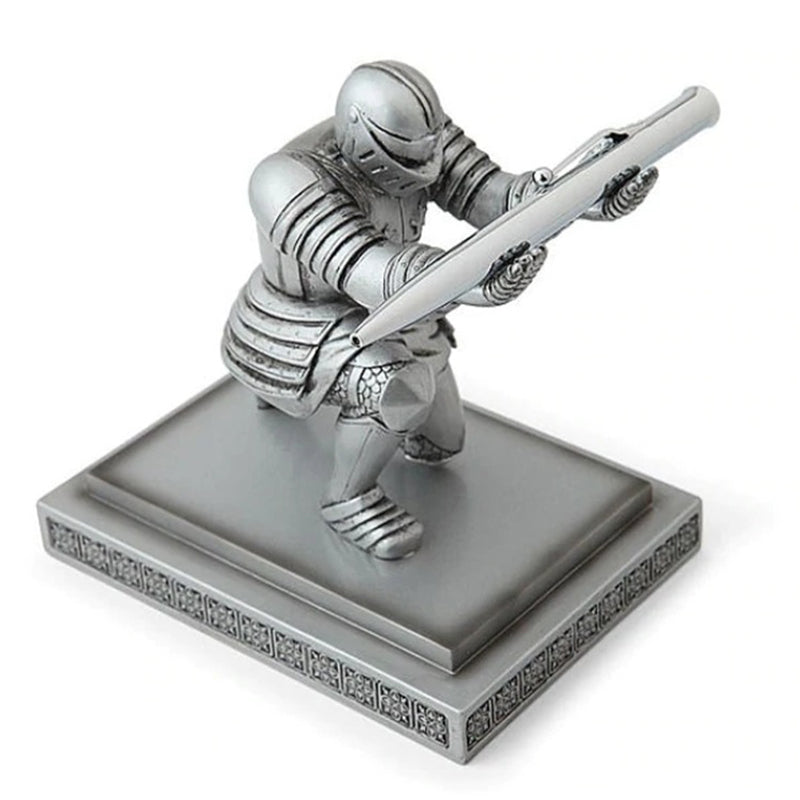 Hvis du ikke har en god pennestativ, gjør du tydeligvis livet feil. Det er ingenting bedre i livet enn å ta pennen din fra en solid holder og føle at du skriver ned noe viktig. Denne ridder pennestativet er en unik statue for kontoret ditt som skildrer en middelaldersk ridder som bøyer seg og holder pennen din ut mot deg som om du var hans konge og pennen er ditt sverd. Han bøyer seg foran deg og gir deg pennen din, og du kan nesten høre ham hviske til deg: "Din penn, Deres Majestet". Oppdatering: Hva ville et ridder pennestativ vært uten en sverd penn?