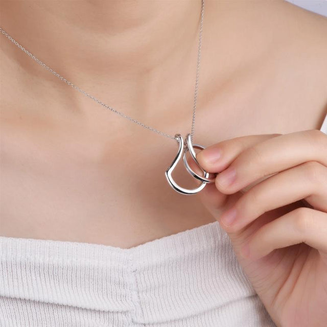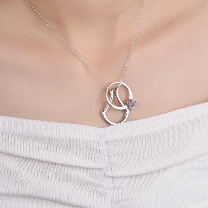 - For å feste ringen din, før den inn fra den ene siden av anhenget. Skyv ringen rundt anhenget mens du justerer og trekker i kjeden. Når ringen har fullstendig omkranset anhenget, slipper du den, og du er ferdig! For å ta av ringen, følg bare disse trinnene i motsatt rekkefølge.