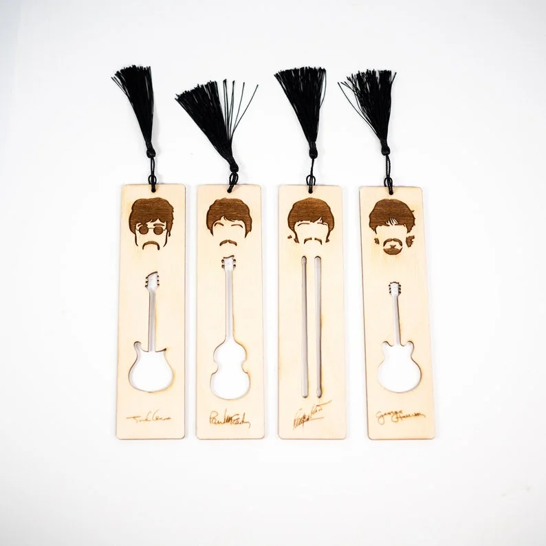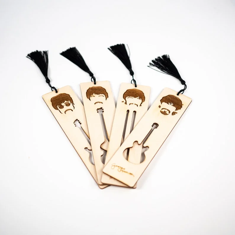 - Denne serien av bokmerker er fremstilt av førsteklasses 1/8 tommers tykk bjørkefiner, med presise laserutskjæringer og graveringer, sammen med fargerike dusker.