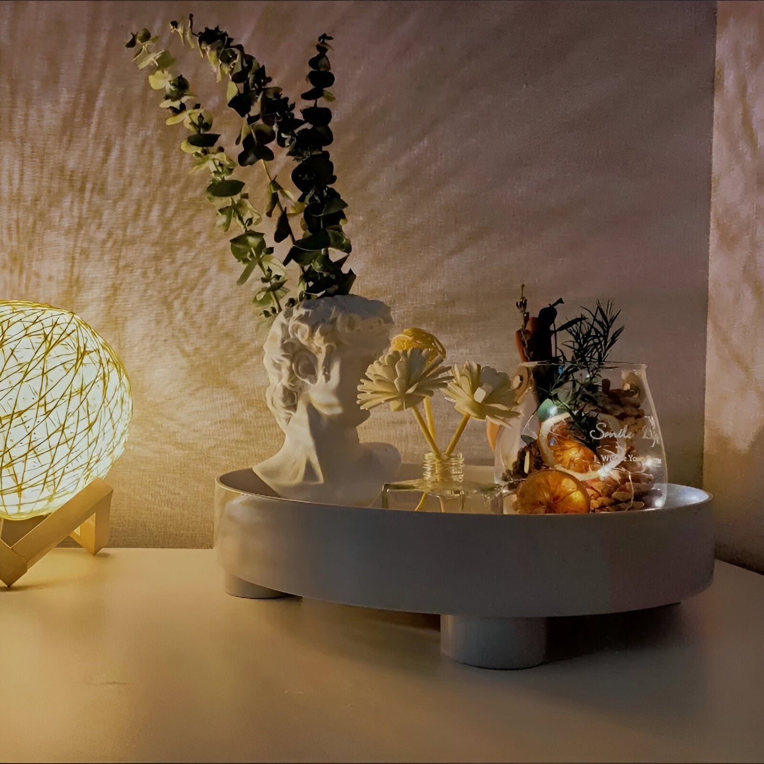 Den elegante runde formen fremmer en følelse av orden mens den gir en raffinert måte å organisere snacks, skjønnhetsprodukter eller forskjellige andre gjenstander på.