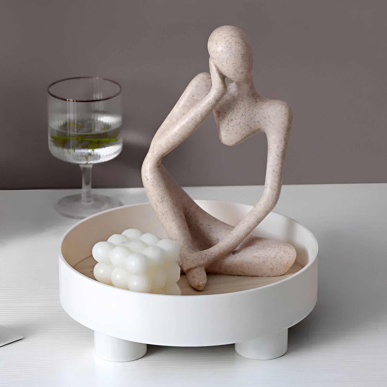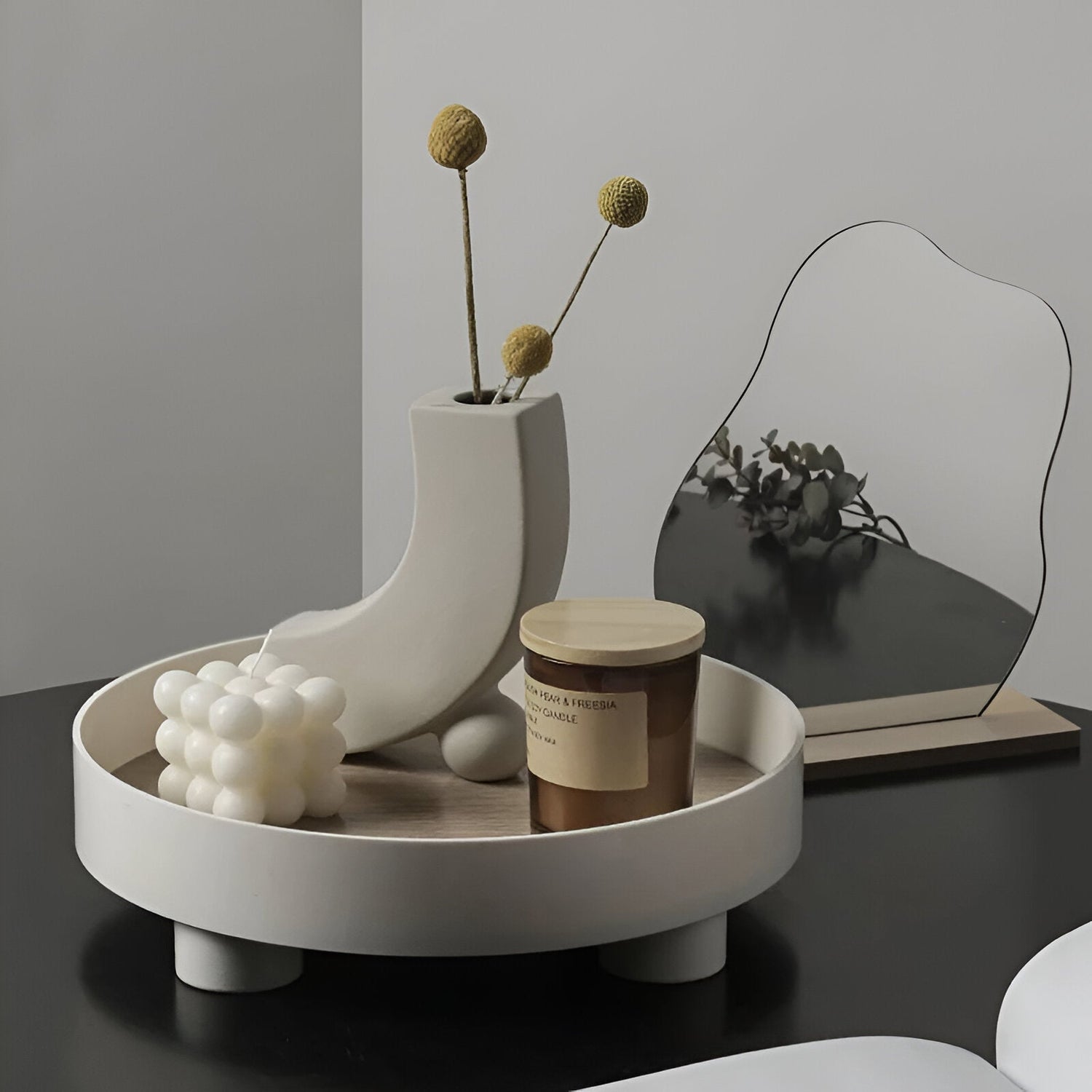 Hjemix | Rund Serveringsbrett - Dekorativt Brett Laget av Tre - Hvitt Brett Laget av Keramikk