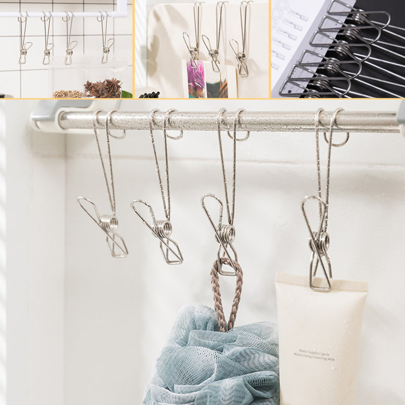 - Utmerket for vaskerom-Disse klipsene i rustfritt stål er utrolig allsidige og kan brukes i enhver del av hjemmet. De er ideelle for å henge klær i vaskerommet eller skap, håndklær på badet, og til oppbevaring av plastposer og diverse på kjøkkenet. De er også anbefalt for å organisere verktøy i garasje.