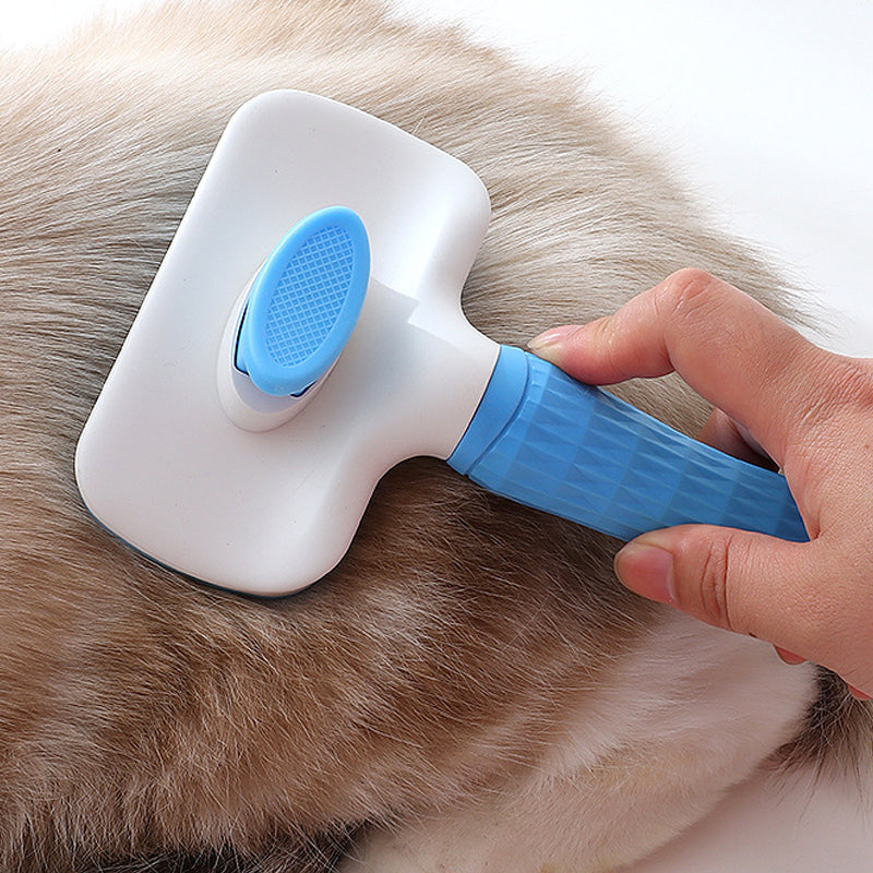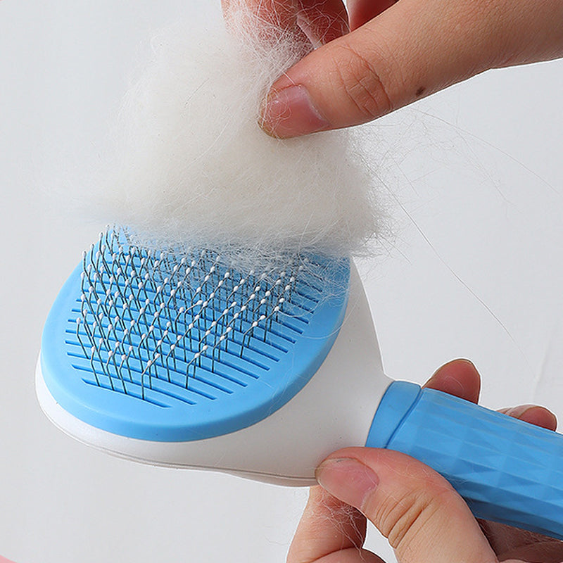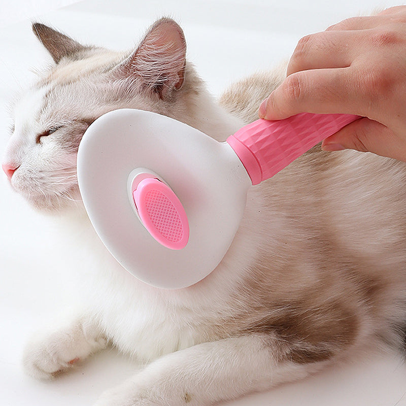 Ergonomisk design: Utstyrt med et sklisikkert håndtak i silikon som gir en komfortabel opplevelse. Den rundede ballbørsten masserer kjæledyret ditt og beskytter huden, den er perfekt for både katter og hunder!