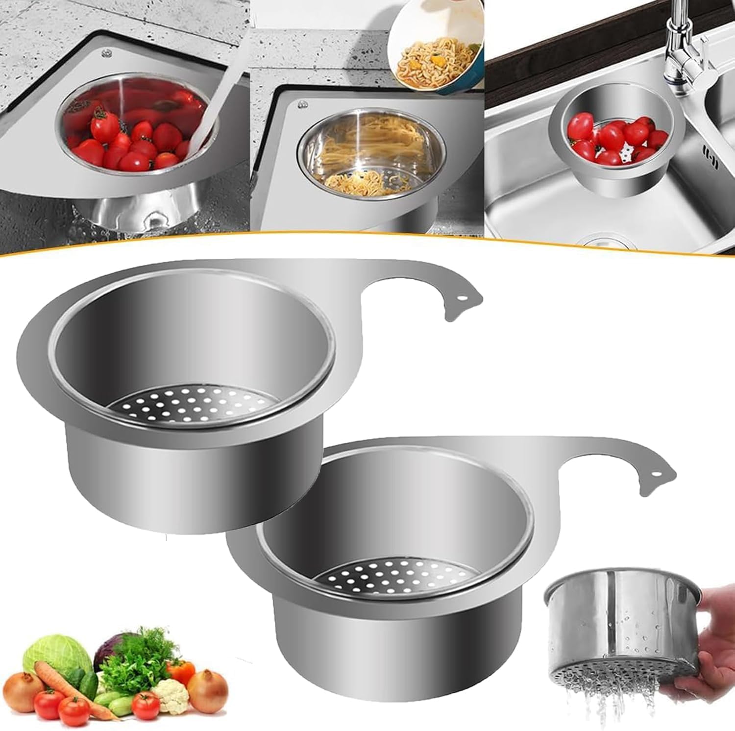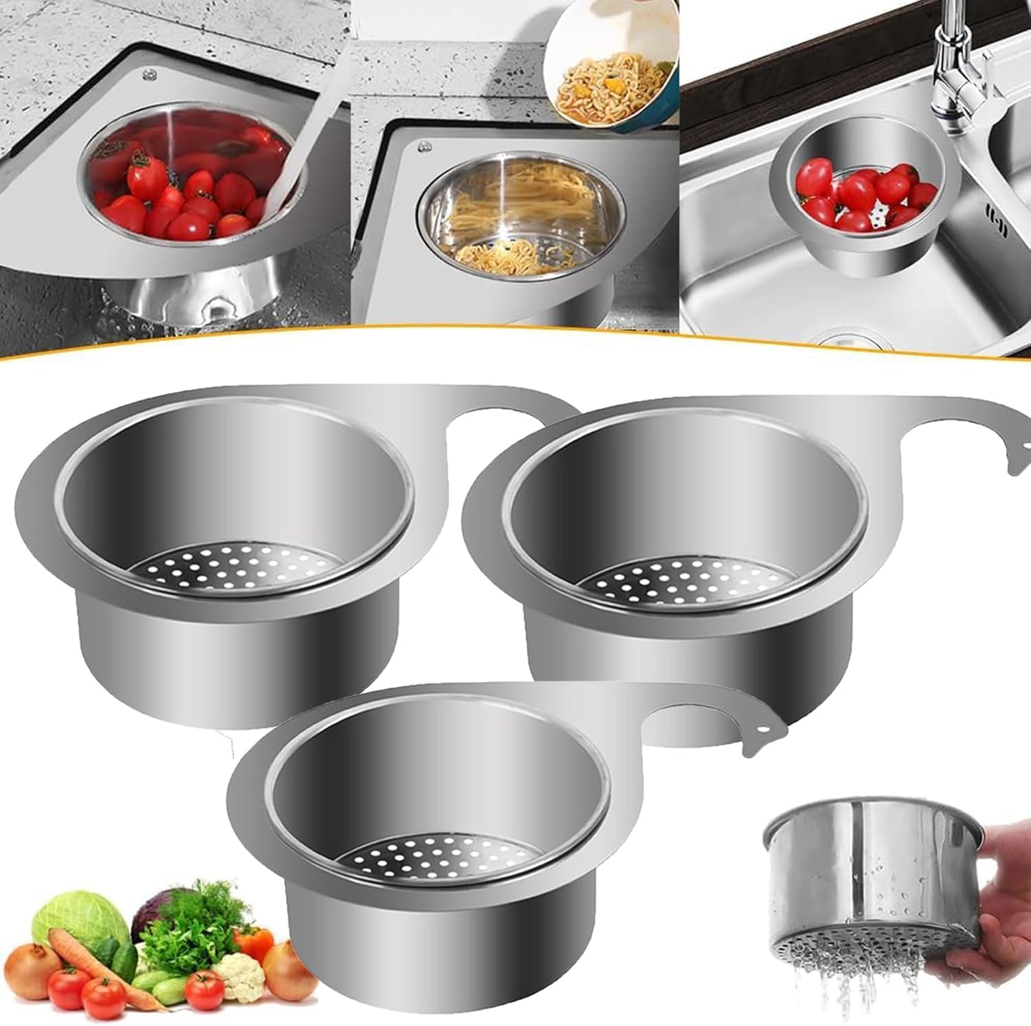 - Sterk og Stabil: Takket være sin trekantede form holder svane vaskestrainer kurven seg trygt i hjørnet av vasken. Dette gjennomtenkte designet gir fremragende stabilitet, noe som gjør den enkel å bruke uten fare for å tippe.