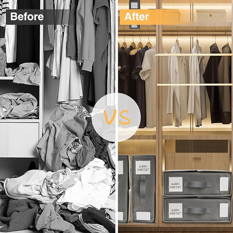 - 👉【Sengeklærorganisator】Ideell for dynesett i queen- eller king-størrelse. Denne oppbevaringsløsningen kan holde et queen- eller king-laken, et dyneomslag og to putetrekk.