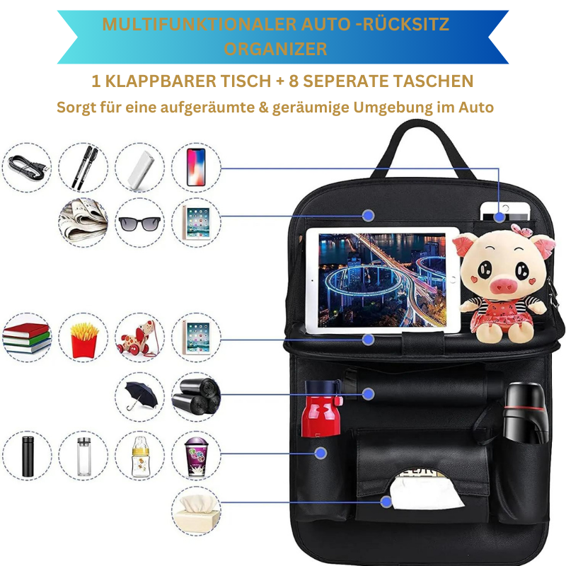 Forbedre ditt bilinteriør med denne praktiske bakorganisatoren fra Norvo. Få ekstra lagringsplass og fordelene med et sammenleggbart bord for en komfortabel og organisert kjøreopplevelse.